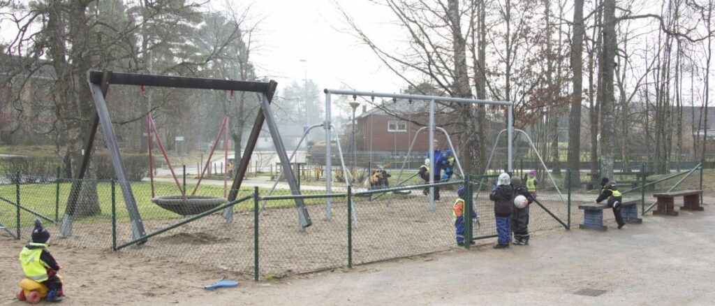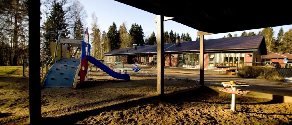 Här finns en lekhall, en stor gård, skog, berg, kullar och gräsmattor med gungor, klätterställningar, rutschkanor, sandlådor och små hus på flera ställen på gården. På vintern finns möjlighet till pulkaåkning.