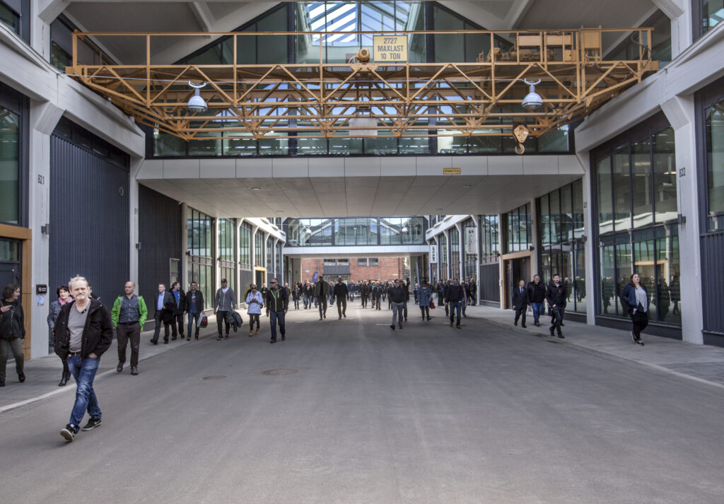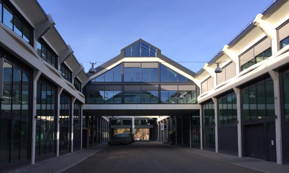 De gamla fasaderna ersattes med glasfasader och med takfönster blir det rikt ljusinsläpp i lokalerna. De synliga stålbalkarna bevarar en del av den historia som finns i byggnaden och med ”broarna” håller man byggnaden sammankopplad med övriga lokaler.