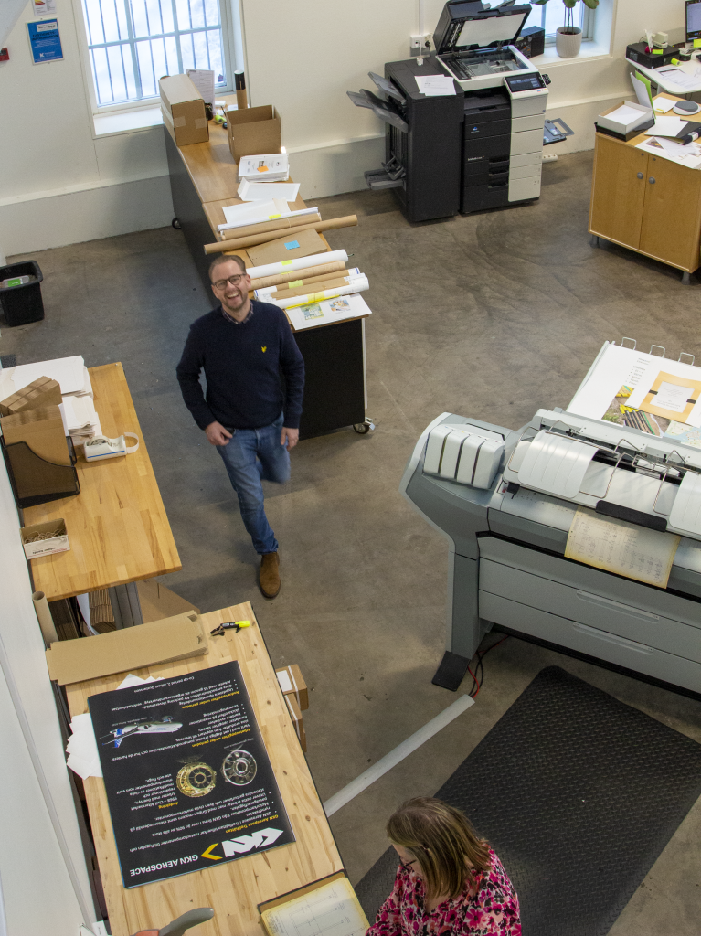 Vi hälsar på hos våra hyresgäster Arkitektkopia som kommit väl till rätta i den karaktäristiska röda byggnaden med de sågtandade taken vid infarten till Innovatum District. Här flyttade de in sensommaren 2022 och insidan har inneburit bättre förutsättningar för deras utrymmeskrävande verksamhet. Med 200 nya företagsgrannar runt hörnet har nya hembasen även medfört flertalet nya affärsmöjligheter.